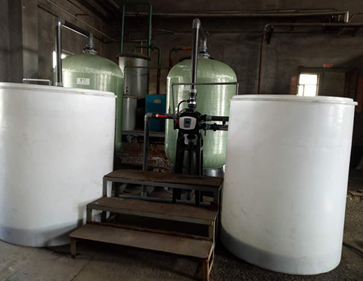 水的硬度主要有其中的陽離子:鈣(Ca)、鎂(Mg)離子構成。當含有硬度的原水通過交換器的樹脂層時,水中的鈣、鎂離子被樹脂吸附,同時釋放出鈉離子。這樣從交換器內(nèi)流出的水就是去掉了硬度離子的軟化水,當吸附鈣、鎂離子的樹脂達到一定程度后,出水硬度增大,此時軟水器按照預定的程序自動進行失效樹脂的再生工作,利用較高濃度的氯化鈉溶液通過樹脂,使失效的樹脂重新恢復至鈉型樹脂。